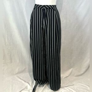 Navy gray and white pinstripe pleated palazzo wide leg trouser pants size large