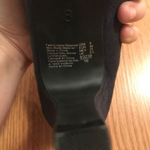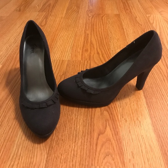 BRAND NEW. Navy suede heels. They have a little ruffle and are about 3 inches. They have never been worn.