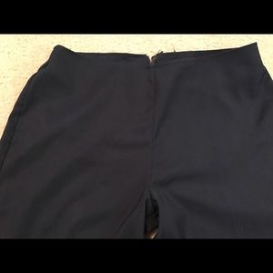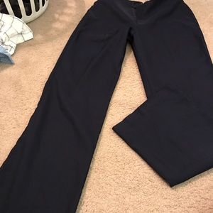 Polyester and stretchy. Super comfy pair with a nice blouse for crop top.