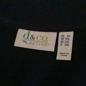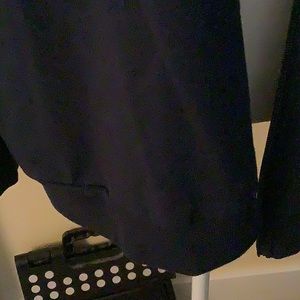 Dark navy jacket, zipper closure, pockets in side seams, worn only once.