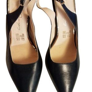 Hand made kid leather upper, leather sole, classic sling back, imported, 3.5 inch heel