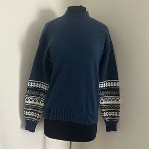 Navy mock neck sweater with Fairisle detail on sleeves size medium