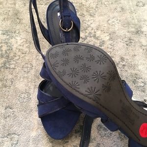 Navy faux suede with satin edging. New with tags, never been worn. Zara