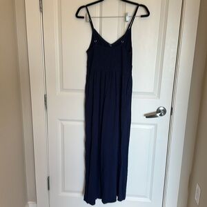 Navy peep front jumpsuit with pockets adjustable straps sz m