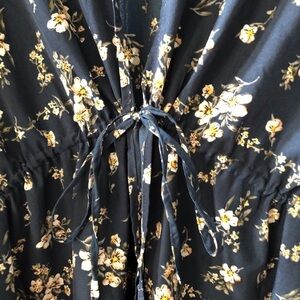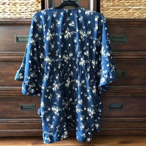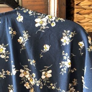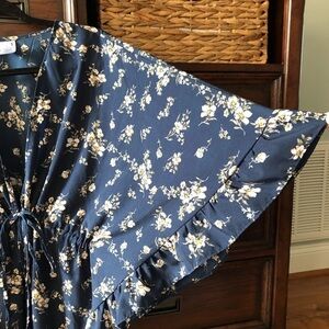 Navy ruffle floral print tie robe like top in size S-M