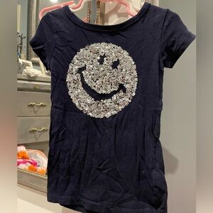 Navy smiley 😃 happy face sequined short sleeve shirt crewcuts collectible