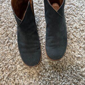 These Kork-Ease Navy suede booties are so comfy and great for walking. Nice enough for work but also great for comfy weekends. The soles are in excellent condition with hardly any wear. Size 8M with a roomy interior.