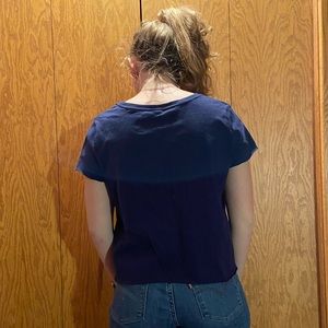 Casual navy tee with raw hem. Never worn