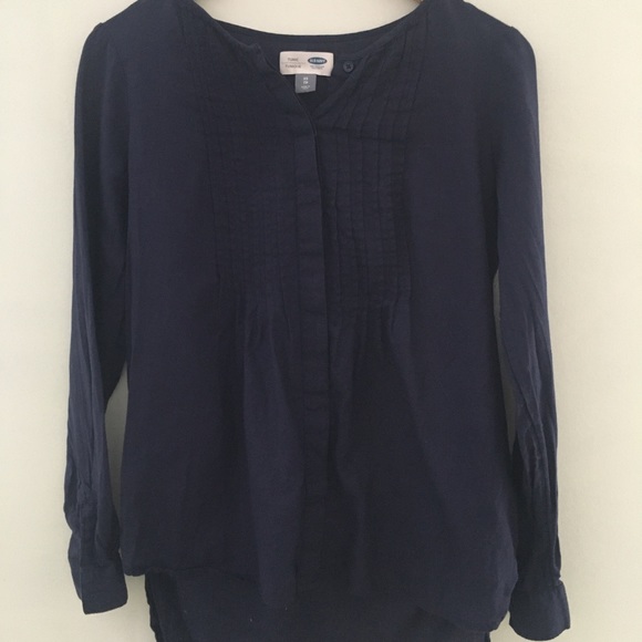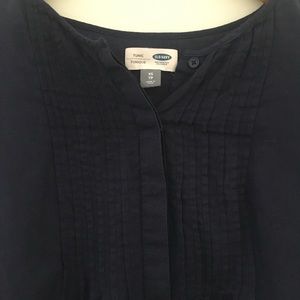 Cute and comfy navy tunic with button front and pleated detailing on front. Longer in back. True tunic length. Lightweight.
