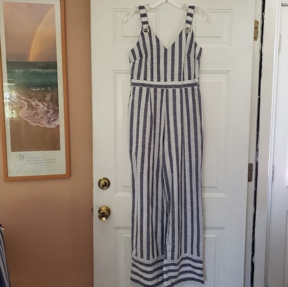 NWOT What a better way to travel this summer with a trendy jumpsuit. Light and airy material will have you ready for the heatwaves stylishly. Can be worn in so many different ways. Light tank top or T shirt or wear just as is. Silver grommets add a pop of shimmer while elastic band across the back keeps you comfortable. Hidden side belt loops allow you to add a pop of color if desired.