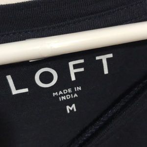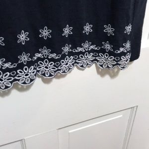 Navy tee perfect for work! Short sleeve with white floral pattern on bottom. Size M