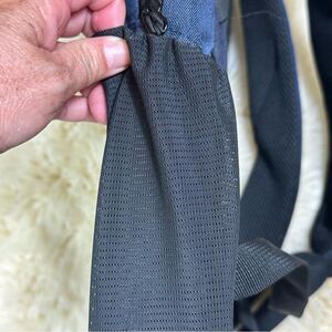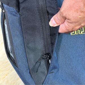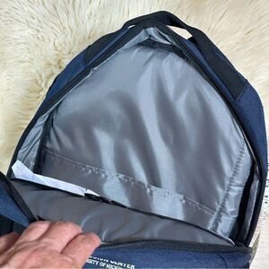 Navy backpack featuring the logo. Ideal for daily use with a stylish design.