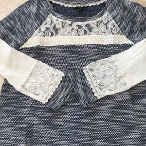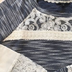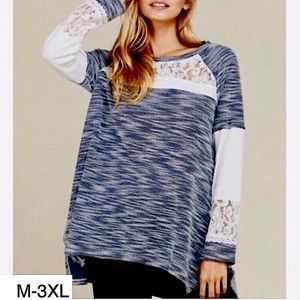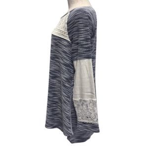 Navy Blue Marled Knit Lace Accent Tunic Sweater S-3XL