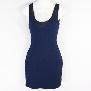 ✨ Express Navy blue and black mesh bandage dress. Zipper on the side. Rayon nylon 5% spandex polyester. 30 1/2 inches long. Tag reads XS.✨
