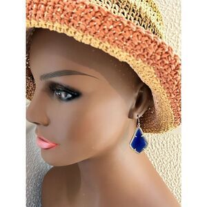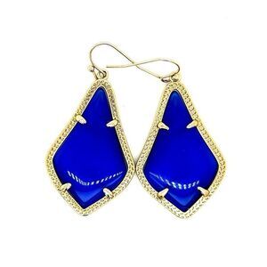 Navy Blue Dangle Earrings Gold Hardware Excellent Condition