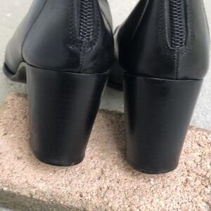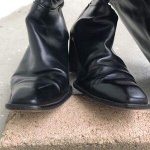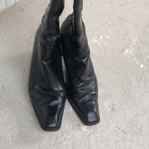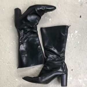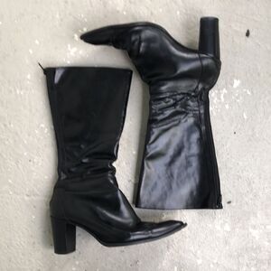 These are great vintage black leather made in Italy boots. Check out the pictures square toed, heel height is 2.75, shaft height is 12 inches across the top of the shaft is 7 inches.