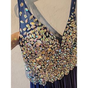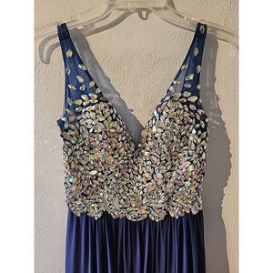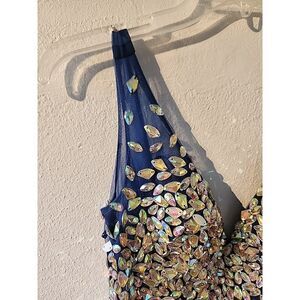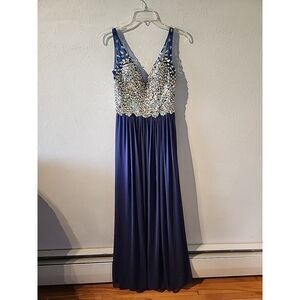 Navy Mesh Low Cut JVN BY JOVANI PROM/PAGEANT/FORMAL DRESS/GOWN READ Size 6