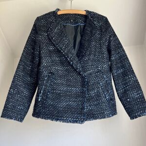Navy Metallic Tweed Blazer Jacket Talbots Size 10 Career Evening Professional