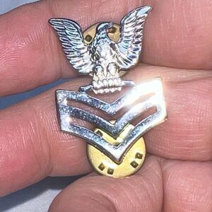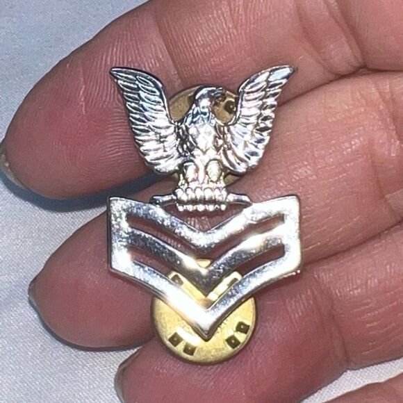 Navy collar device mirror finish E-6 service uniform APPROXIMATELY WIDTH ¾” – HEIGHT 1 ¼”