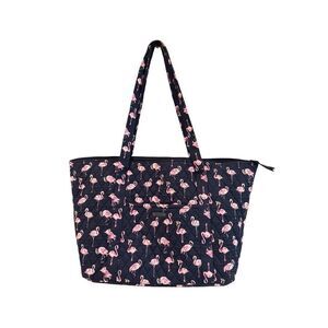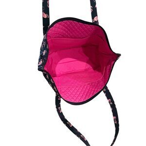 Vera Bradley Womens Zippered Top Double Handle Flamingo Print Quilted Tote Bag