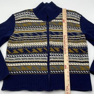 Navy blue patterned zip up mayfra sweaters sweater