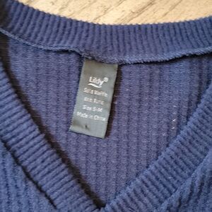 Navy waffle knit v neck tunic long sleeve top size S-M 💙