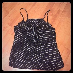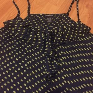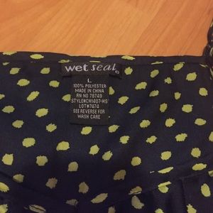 Size L Wet Seal tank top with adjustable straps. Navy silky material with neon green dots. Great condition, barely worn.