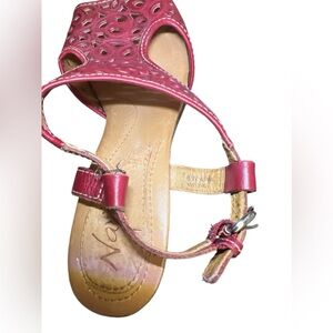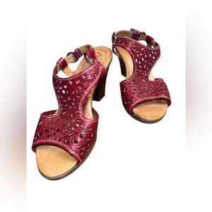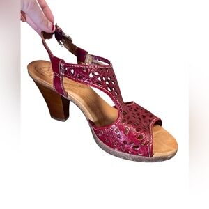 Naya Alpine red leather sling back heeled sandals