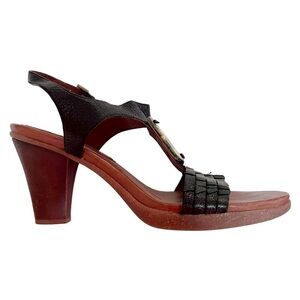 Naya Arnelli Black Leather T-Strap Heel Sandal Size 10