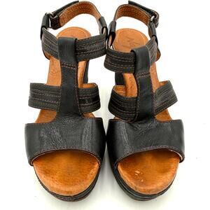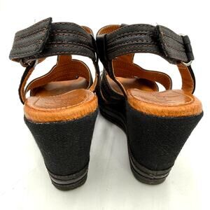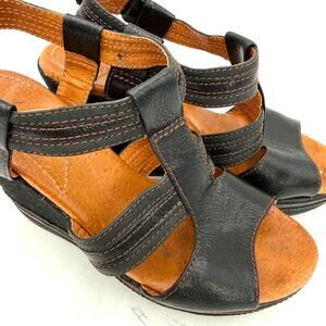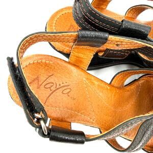 Naya Black Leather Elise Strappy Wedge Heels Size 6.5