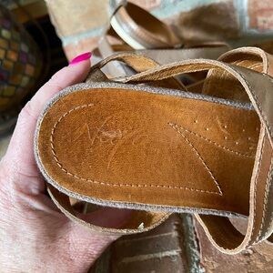 Excellent condition! Buckles at ankle, 3.5" bamboo block heel. Genuine leather.