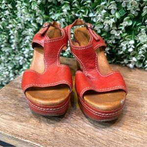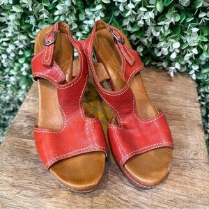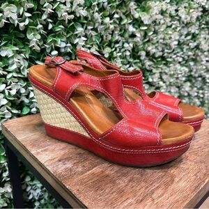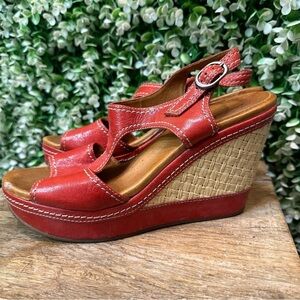 Naya Eternal red leather and woven rattan wedges size 10 in VGUC