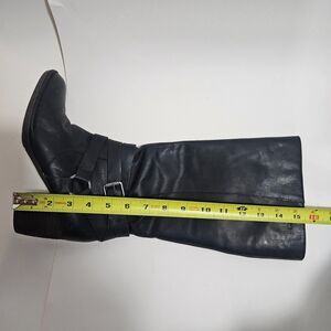 Naya Gazelle Leather Boots Black Block Heel Mid Calf 7.5 Women's Bikercore