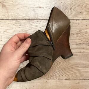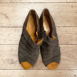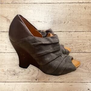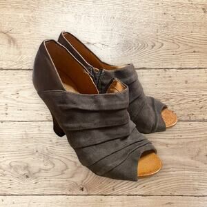Naya Leather Peep-Toe Booties Gray Suede Pleated Size 0