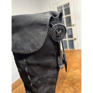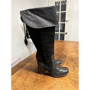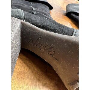 Naya Narubi Women's 7 Black Over the Knee Fold Down Suede Leather Boots Heeled