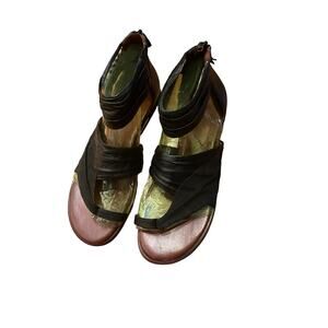 Naya Samara Sandals Ankle Wrap Back Zipper Leather Black Womens Size 9W NWB