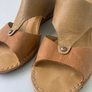 Naya Size 12M Genuine Leather Fabiana Wedge Heel Sandals Beige Slip On Slides
