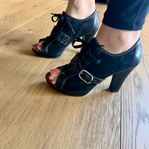 Naya 7.5 black suede and leather lace up booties. Rock and roll vibe, soft supportive insoles. Excellent traction with rubberized soles. Fits like a 7.5-8.
