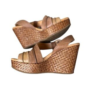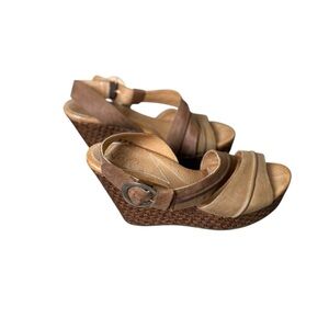 •Style Profile: Naya Women's Brown Leather Wedge Sandals Size 8.5M Estra Casual Classic Neutral