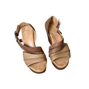Naya Women's Brown Leather Wedge Sandals Size 8.5M Estra Casual Classic Neutral