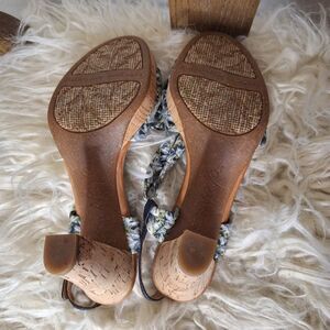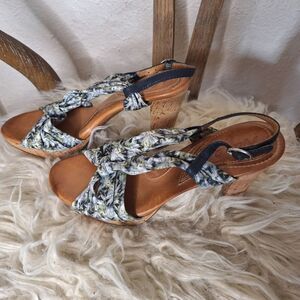Naya anthropologie blue floral heeled sandals super comfortable cork 8m