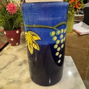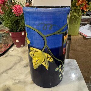 Naylor Designs hand painted Flowers Vase 9.5" Blue Vine Wine 2004