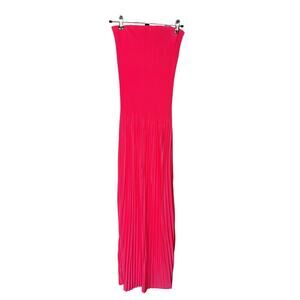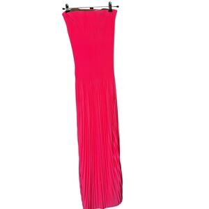 Nbd 'Anita' Pink Polyester Maxi Dress Size XS: fully lined, hidden side zipper closure, boned bustier with hook and eye closure, pleated satin fabric, small stain.