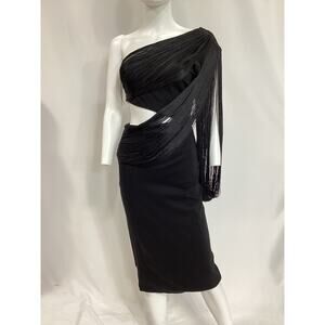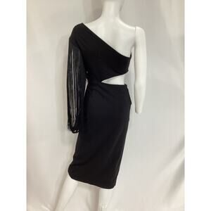 Nbd 'Joona' Black Padded One Shoulder With Fringe Midi Dress Size XS
