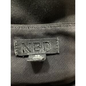 Nbd 'Joona' Black Midi Dress Size XS: unlined, hidden side zipper closure, padded one shoulder styling with draped fringe detail, midweight jersey fabric with side bodice cut-out.