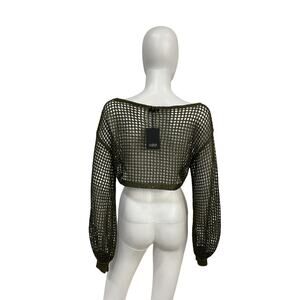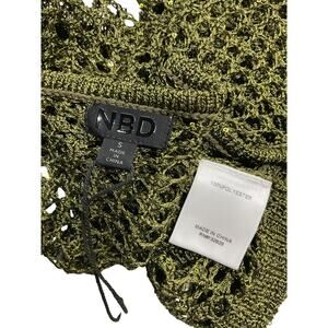 Nbd 'Lex Sequin' Green Polyester Cropped Sweater Size S: crochet fabric with allover sequin embellishments.