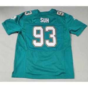 This is a Ndamukong Suh Miami Dolphins Jersey Size 44 Nike On Field #93. It is pre-owned but in good condition. There is a small scrape on the numbers on the back of the jersey.