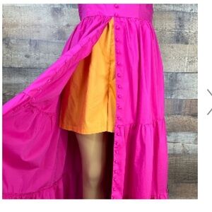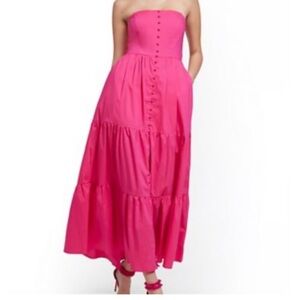 Née York & company Bright pink strapless Button Front Maxi dress Size M (B-13)