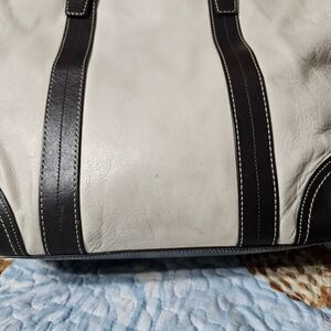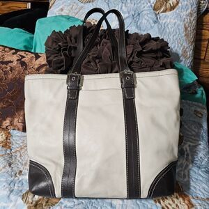 Near Vintage Y2k Coach Purse Tote Hamptons Ivory/Brown Smooth Leather Tote Shoulder Bag