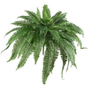 Bring nature indoors with a soft, cascading touch! This Boston Fern features gracefully arching fronds that spread out 48", showcasing the intricate pinnates for a lush, textured look. Overflowing with tiny evergreen leaves, it creates a full, vibrant display that complements any décor style. Perfect for placing on high shelves, in a hanging basket, or styled together for a symmetrical touch, this fern offers versatile design options. This set of two stand-alone ferns can be arranged to fit any space, bringing a fresh, natural look with zero maintenance required. Made from premium synthetic materials, these ferns maintain their lifelike beauty year-round.